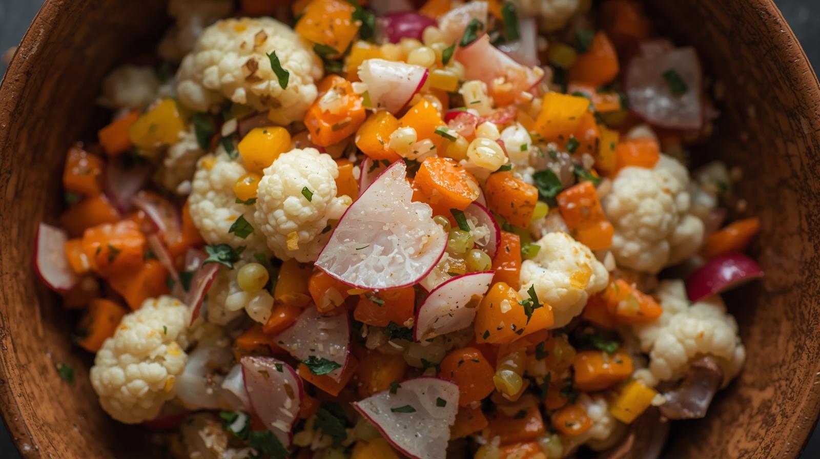 Chou-fleur sauté façon taboulé aux poisson mariné